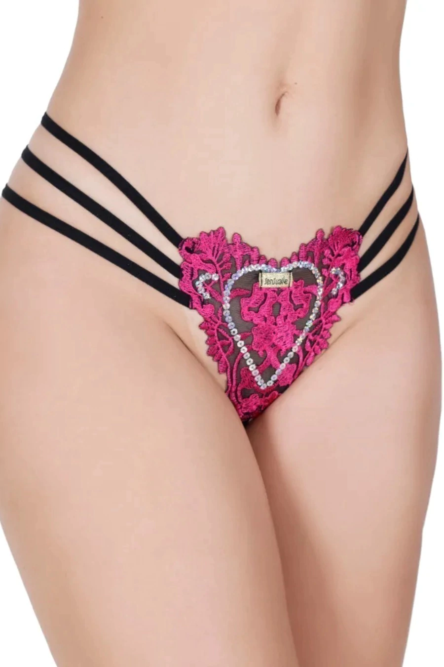 Ref.: Calcinha Coração - Calcinha fio dental com guippir em forma de coração na frente. Tiras com alta elasticidade e laços nas costas. Tanga sem fundo. Para aquela noite especial.