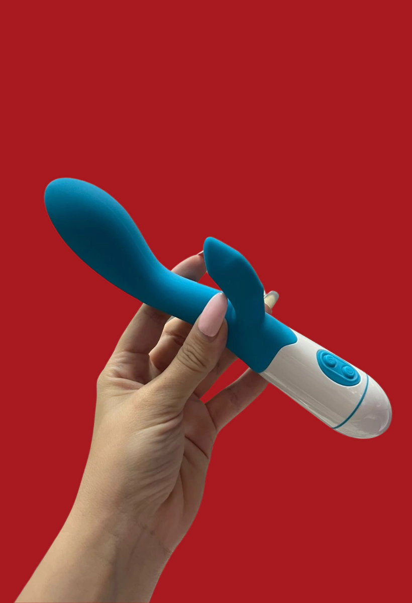 Vibrador ponto G e clitóris composto por silicone, material macio e com um toque aveludado.